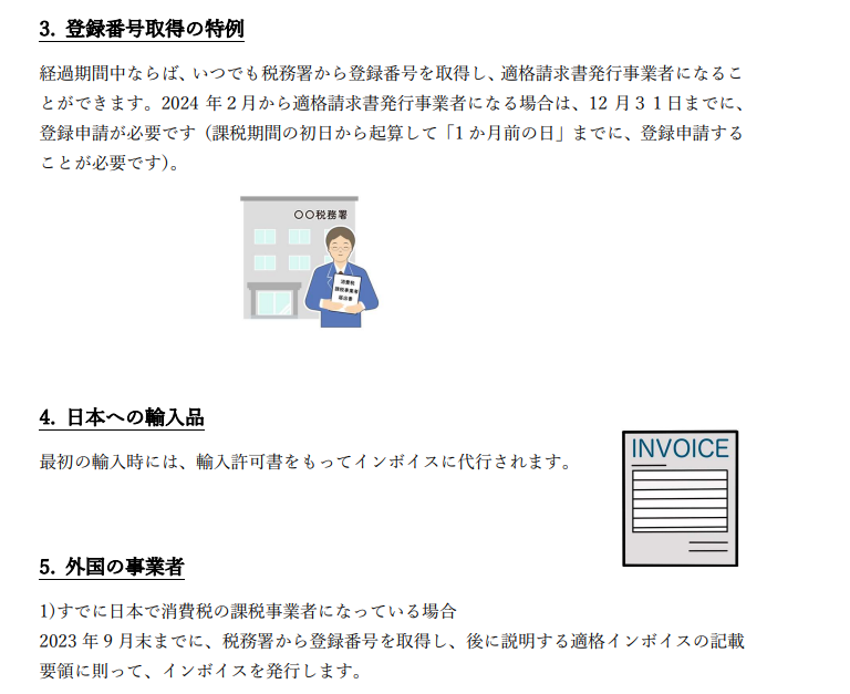 経過措置もあります。2023年9月末までに登録番号を得ない者は、